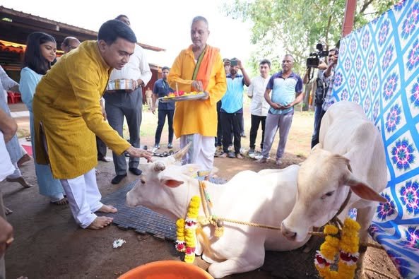 In a heartwarming display of devotion and commitment to the agricultural community, Chief Minister Dr. Pramod Sawant performed the sacred Govardhan Puja at Gomanchal Dairy Farm in Kudnem on the auspicious occasion of Padwa. The ceremony was a celebration of the sacred bond between humans and cows, highlighting the importance of Gau Seva (service to cows) in Hindu culture.