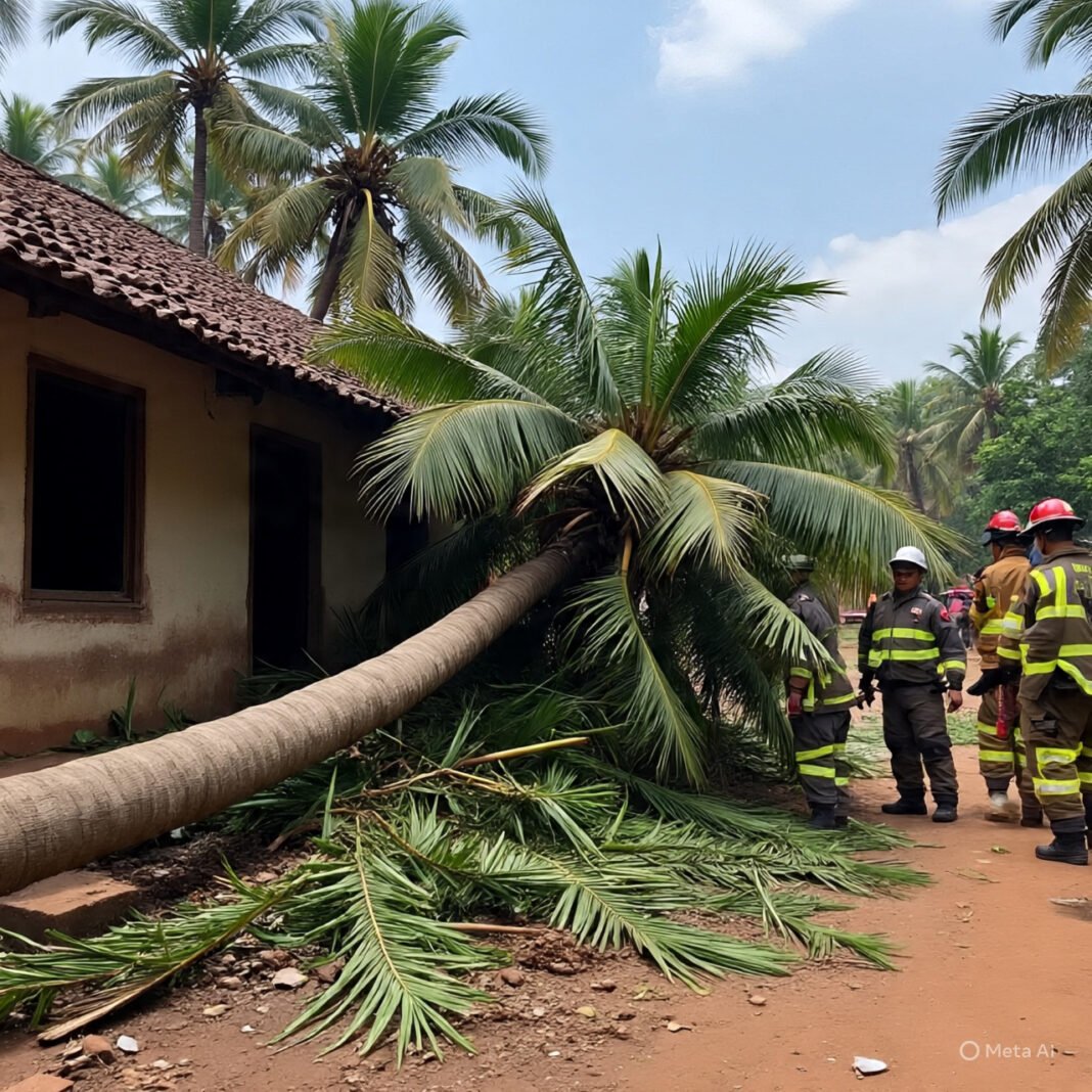 Mapusa: : A coconut tree fell onto a house in Tarachem Bhat, Siolim, near the local post office, causing damage to the property. The incident occurred at 10:43 HRS on Thursday.