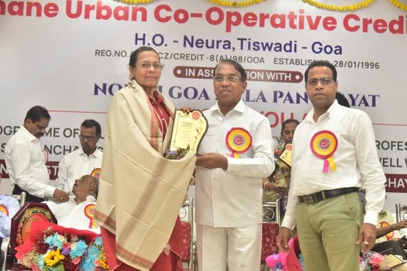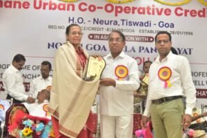 Neura: Co-operation Minister, Shri. Subhash Shirodkar attended the felicitation programme of founder members of the Society, Professionals, Senior Citizens, Sarpanchas, Social Workers, Teachers, students and well wishers at a function organized by the Azmane Urban Co-Operative Credit Society Ltd. Neuro, Tiswadi Goa, in association with North Goa Zilla Panchayat at Neura.