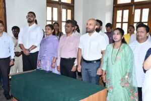 Mapusa: In a heart willing display of patriotism, Deputy Speaker Goa Legislative Assembly and Mapusa MLA, Shri. Joshua De Souza, led the mass singing of the full version of ‘Vande Mataram’ at Old Mapusa Municipality Hall, Mapusa. The event, commemorating 150 years of India’s national song, saw enthusiastic participation from locals, dignitaries, and students.