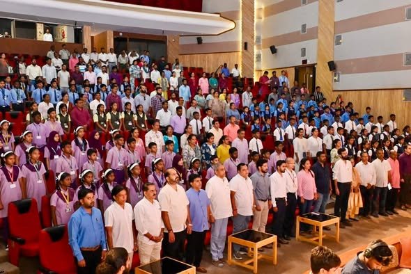 Panchayat Minister, Shri Mauvin Godinho along with Power Minister Shri Ramkrishna alias Sudin Dhavalikar , MLA Shri Sankalp Amonkar and MLA Shri Krishna Daji Salkar, participated in the Mass Singing of the full version of ‘Vande Mataram’ at Ravindra Bhavan, Vasco (Baina), in an event commemorating 150 years of the National Song ‘Vande Mataram