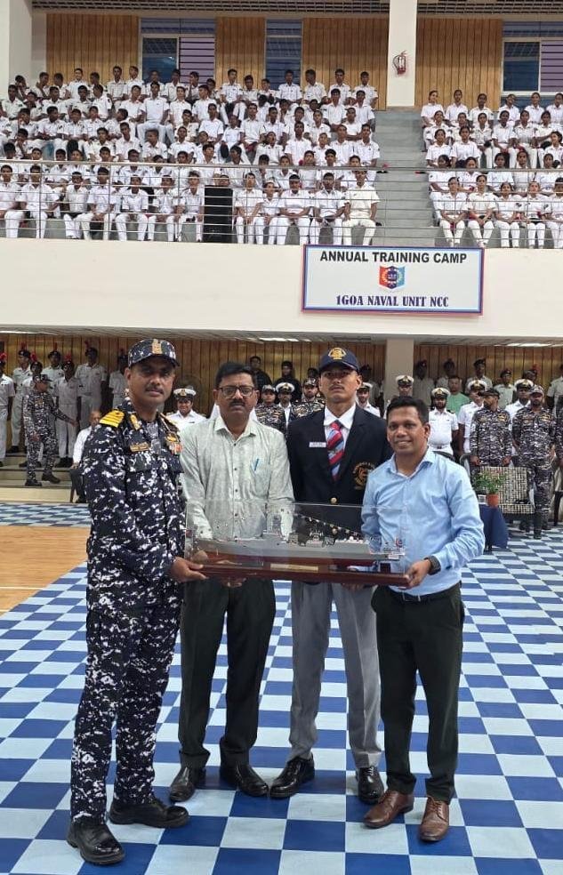 Shri Ajay R. Gaude was received by Captain Sumeet Sinha, Commanding Officer, 1 Goa Naval NCC, who briefed him on the objectives, training activities, and the role of NCC in youth development. During his interaction, the Director inspired the cadets by sharing incidents and life lessons from his personal journey, stressing discipline, determination, and hard work.