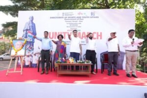 Bicholim: Chief Minister Dr. Pramod Sawant flagged off the second Padyatra for the North District from Ravindra Bhavan, Sankhali, culminating at Government Primary School, Karapur. The event was organized by the Directorate of Sports and Youth Affairs in association with My Bharat and NSS Units, under the “Sardar@150-Unity March Campaign.