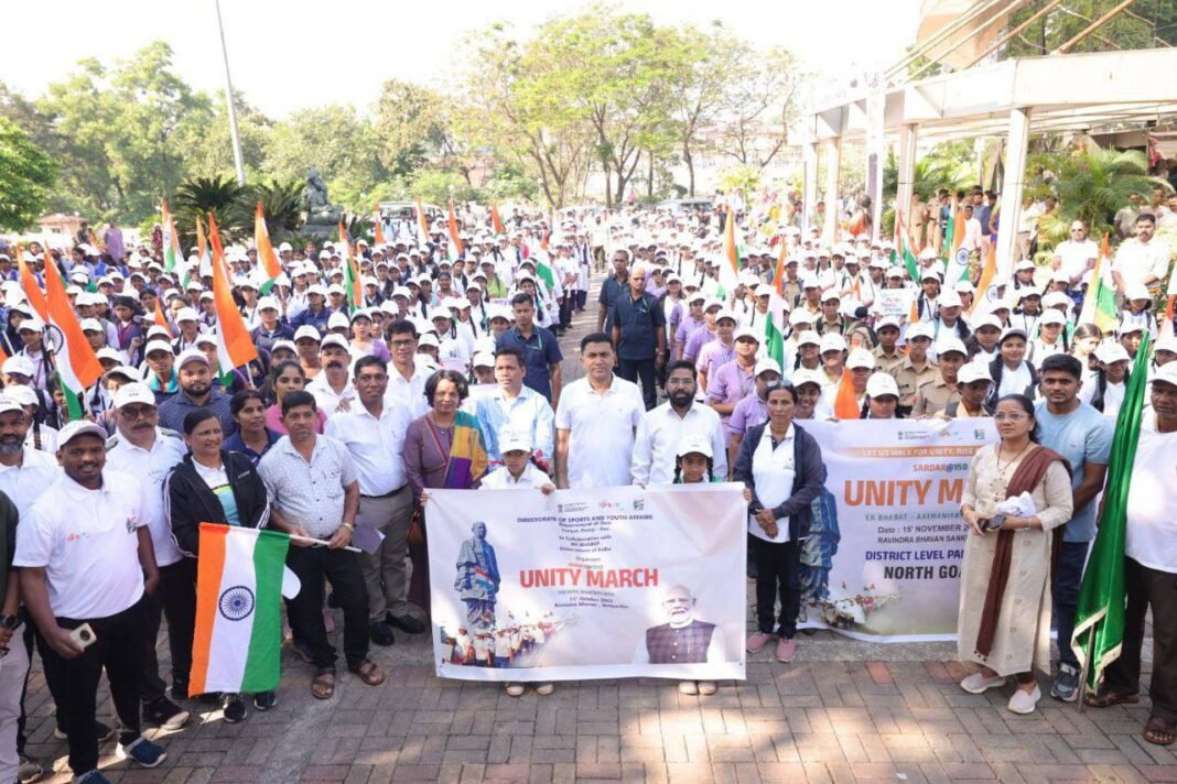 Bicholim: Chief Minister Dr. Pramod Sawant flagged off the second Padyatra for the North District from Ravindra Bhavan, Sankhali, culminating at Government Primary School, Karapur. The event was organized by the Directorate of Sports and Youth Affairs in association with My Bharat and NSS Units, under the “Sardar@150-Unity March Campaign.