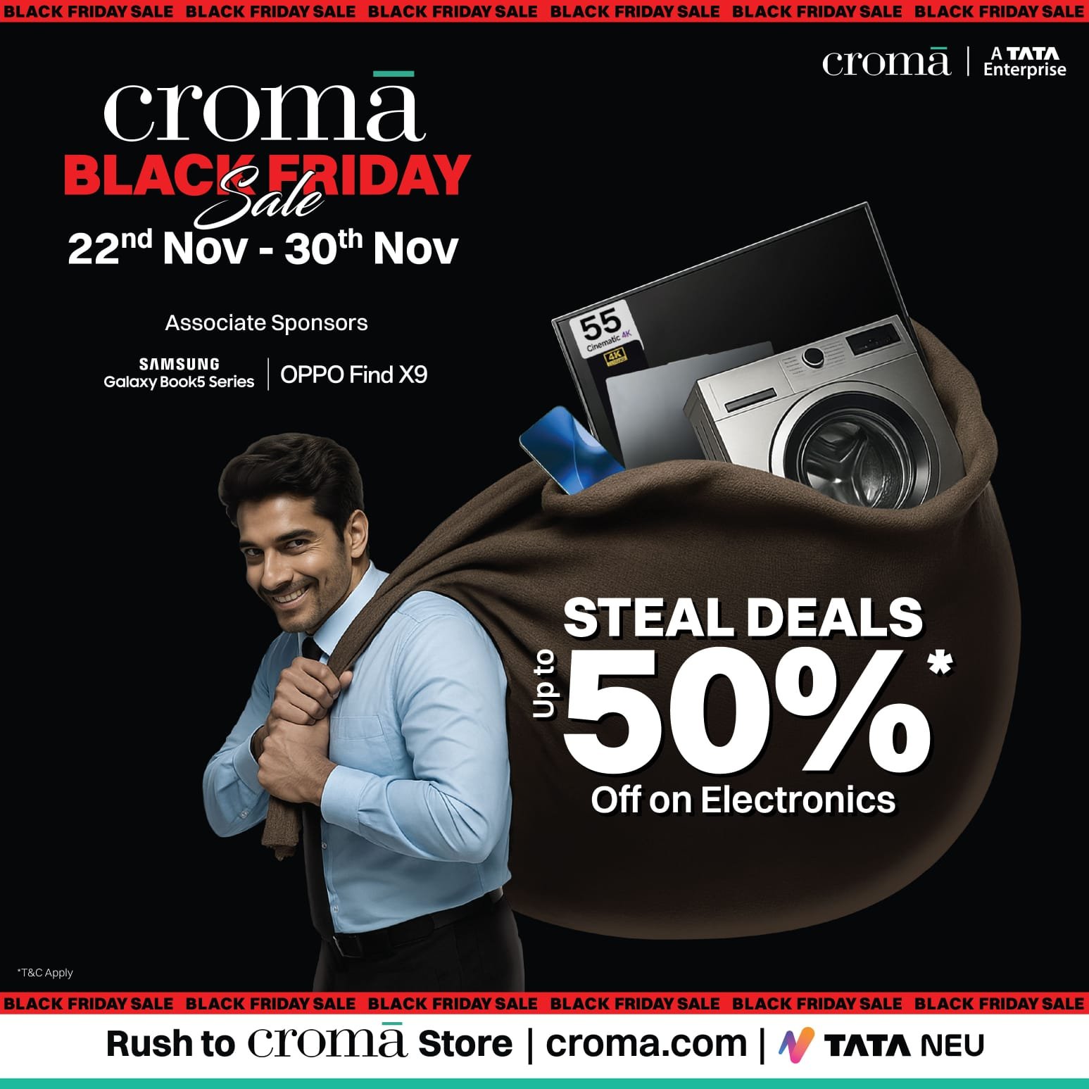 Customers can avail of all Black Friday offers at Croma stores across India and online at www.croma.com or via the Tata Neu app.