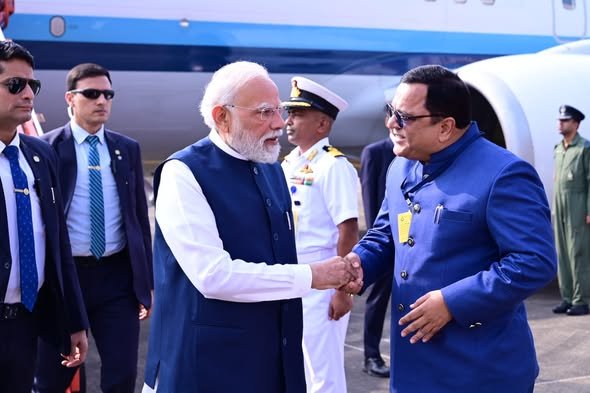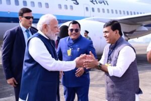 Sankalp Amonkar, Shri. Krishna Daji Salkar, Chief Secretary, Dr. V. Candavelou, IAS, & others , welcomed Prime Minister, Shri. Narendra Modi on his arrival to Goa at INS Hansa, Dabolim.