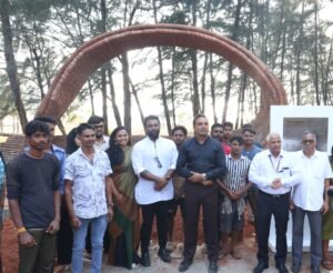 photo captions : Renowned architect Vinu Daniel (in the middle), CCP Mayor Rohit Monserrate (to Vinu’s right), Sandip Jacques, (IAS), MD & CEO, IPSCDL. (Extreme Right) with on ground workers of Vinu Daniel’s latest installation at SAF- Terra Grove at Miramar Beach.