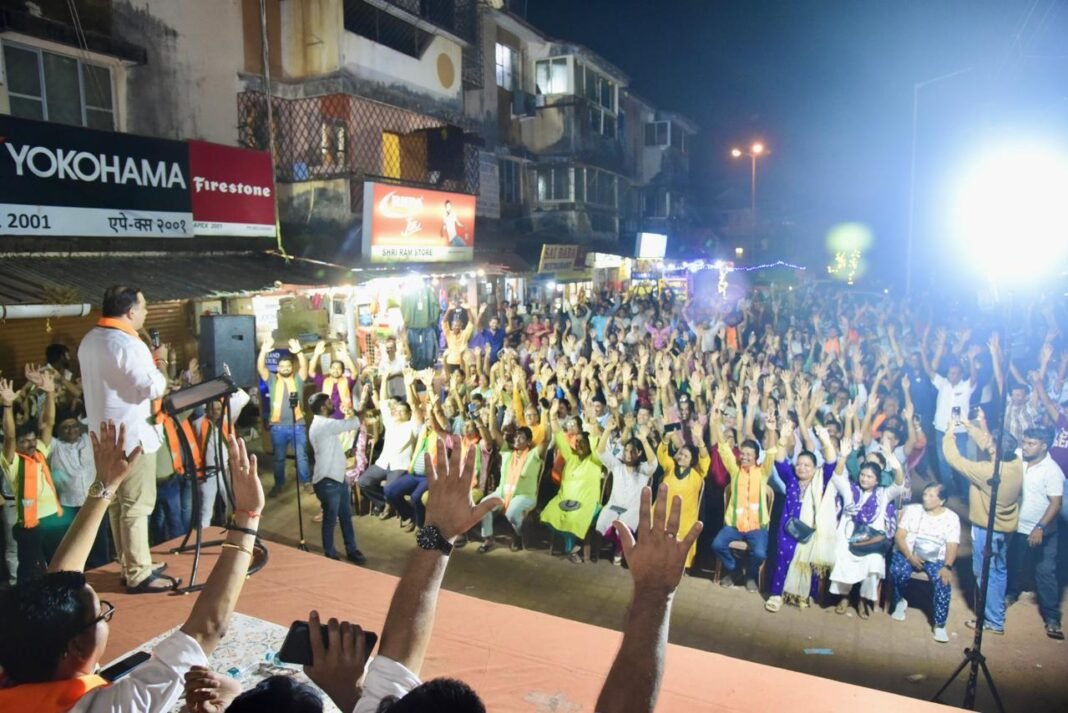 BJP’s ZP Candidate Shri Sandeep Salgaonkar gets a massive show of support at Kavlekar area in Penha De Franca, with Hon’ble Minister and MLA Porvorim Shri Rohan A. Khaunte addressing a packed public meeting on the final day of campaigning.