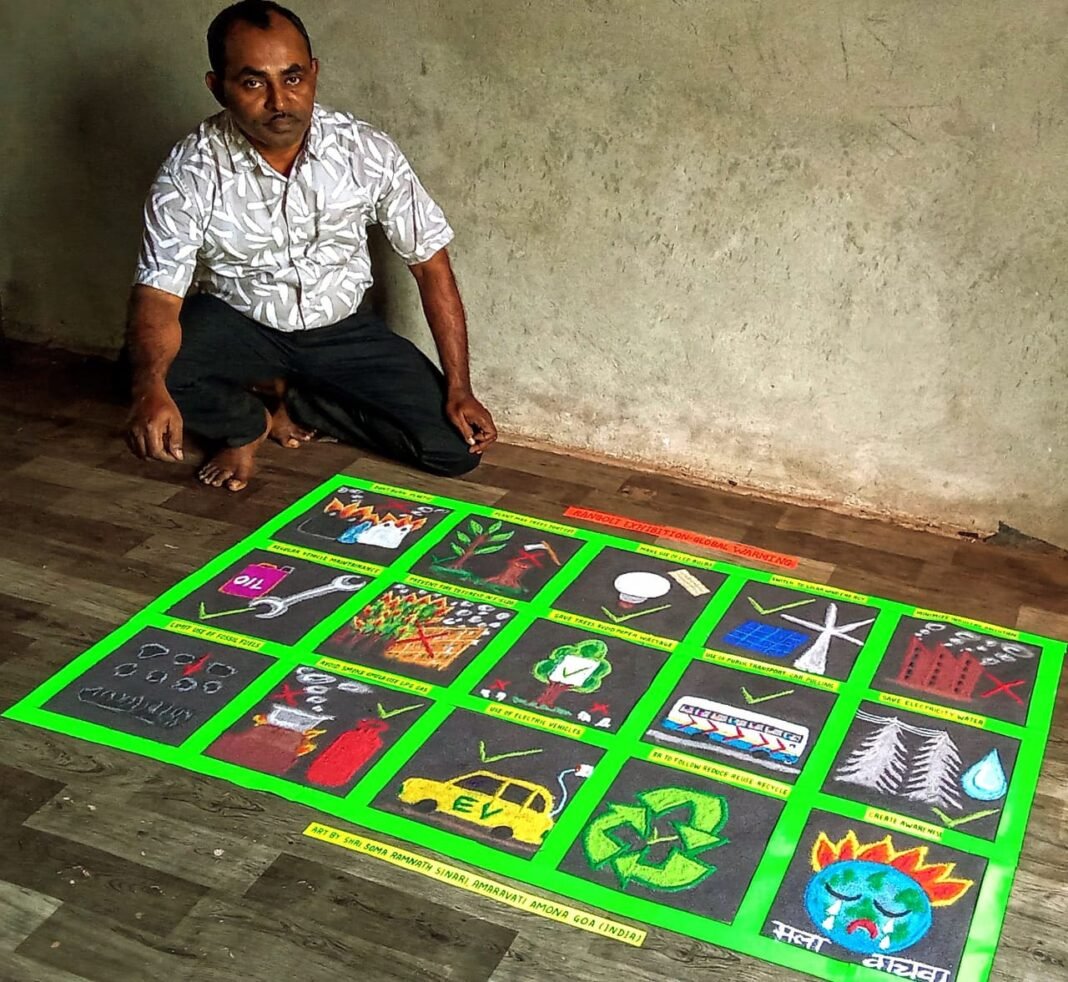 Amaravati Amona Shines with Eco-Awareness: Rangoli Exhibition Highlights Global Warming Concerns