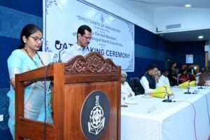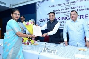 Porvorim, Goa – Chief Minister Dr. Pramod Sawant attended the oath-taking ceremony of newly elected members of the North Goa and South Goa Zilla Panchayats at the Secretariat on wednesday . Reshma Bandodkar and Namdev Chari took oath as Chairperson and Deputy Chairperson of North Goa Zilla Panchayat, while Sidharth Gauns Dessai and Anjali Velip were sworn in as Chairperson and Deputy Chairperson of South Goa Zilla Panchayat.