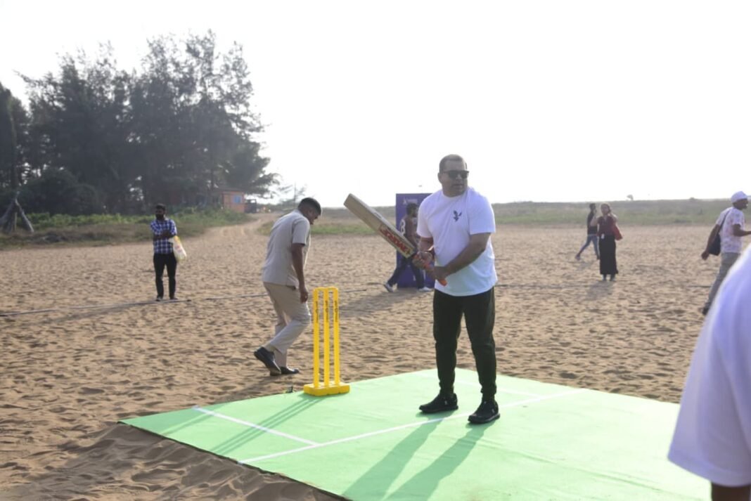 vibrant beach cricket session that brought together cricketing greats, Goan leaders, and children from the local community in a celebration of sport, togetherness and Goa’s unmistakable spirit.