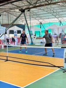 Image 1 – ( L to R) : Lincoln Furtado and Savio Vales, winners of the Men’s Doubles 60+ category, in action during the ongoing BPS Open Pickleball Championship 2026.