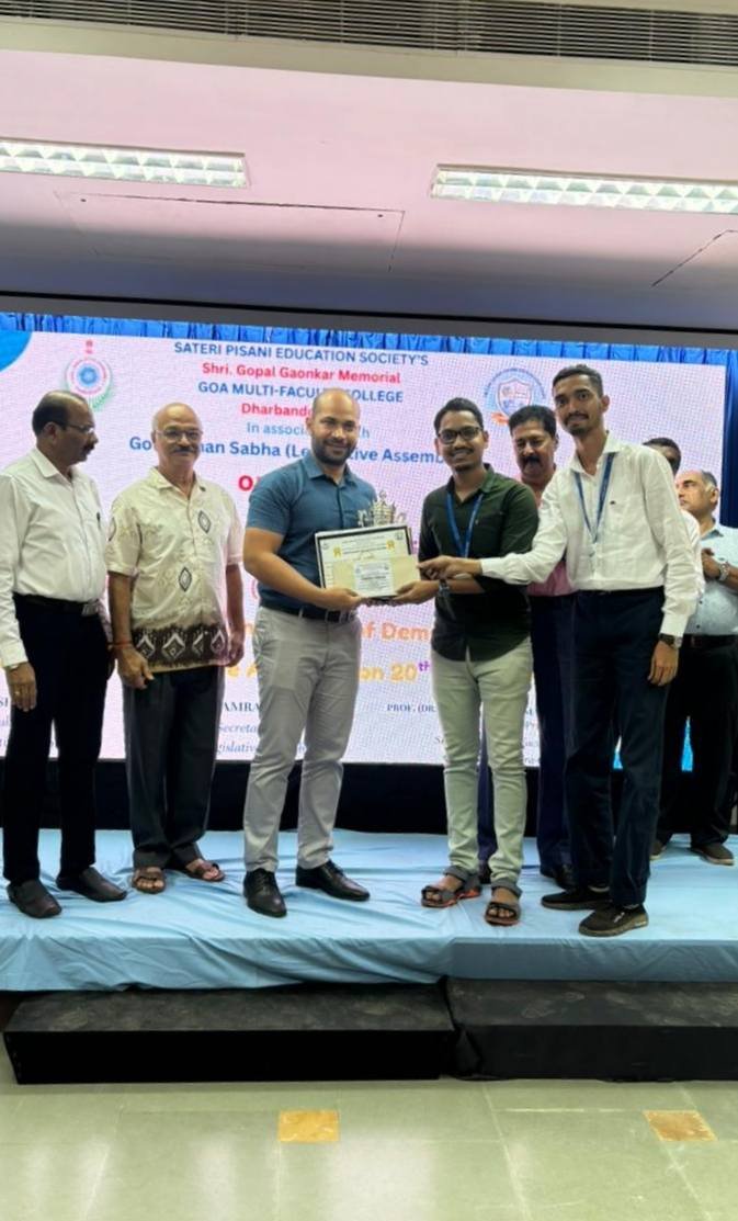 Porvorim, Feb 22: Deputy speaker Joshua D’souza graced the Student’s Parliament Prize Distribution Ceremony at the prestigious PAC, Goa Legislative Assembly, applauding the young minds for their stellar performance. The event showcased the vibrant energy of Goa’s students, with Sai Nursing Institute taking the top spot, followed closely by Shri Gopal Gaonkar Memorial Goa Multi-Faculty College, and Goa University securing third place.