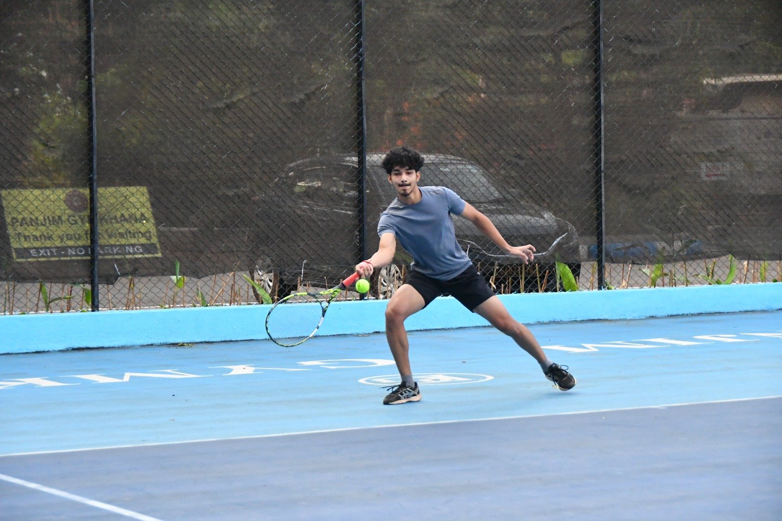 Image 1: A young tennis player executes a shot from the baseline at a previous edition of the Bandodkar Panjim Gymkhana Tennis Open.