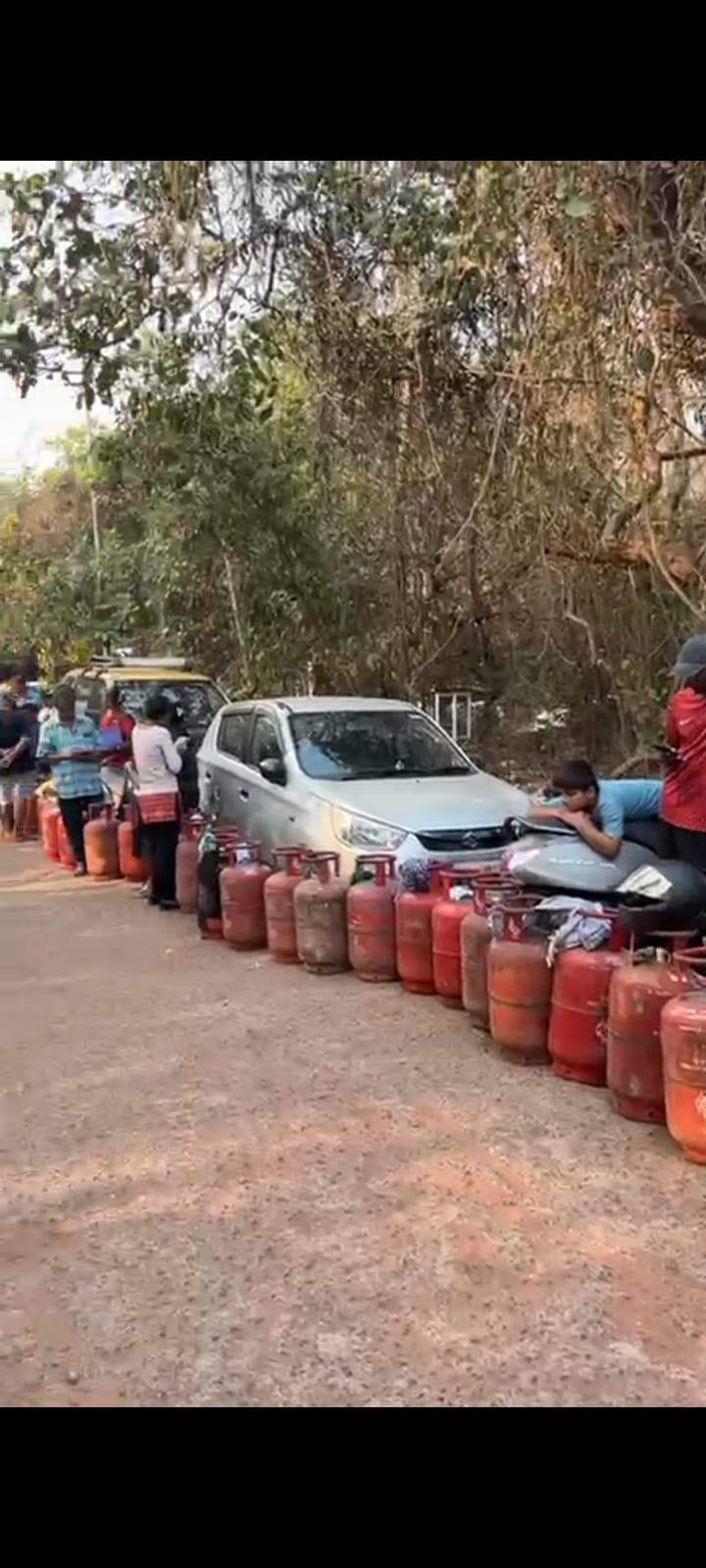 The consumers men, women, young and old who were running shortage of LPG Cylinders  just rush to the godown blindly and stand in lengthy queue to get their share.