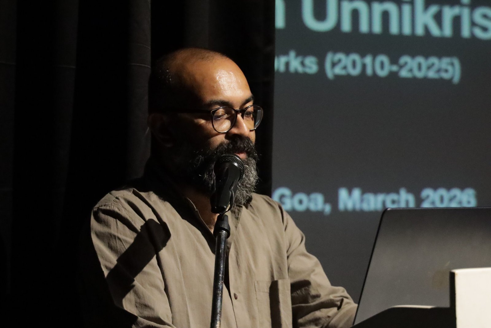 Image 1 : Artist Nityan Unnikrishnan during his recent MOG Sunday talk ‘All of us – by Nityan Unnikrishnan ’, held at the Museum of Goa, Pilerne.