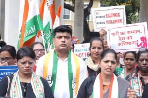 As the march progressed, Mahila Congress workers raised slogans against the ruling Bharatiya Janata Party government, calling it a “bhalatkari sarkar” and questioning the silence of BJP Mahila workers in the case. Protesters accused the government of failing to ensure women’s safety.