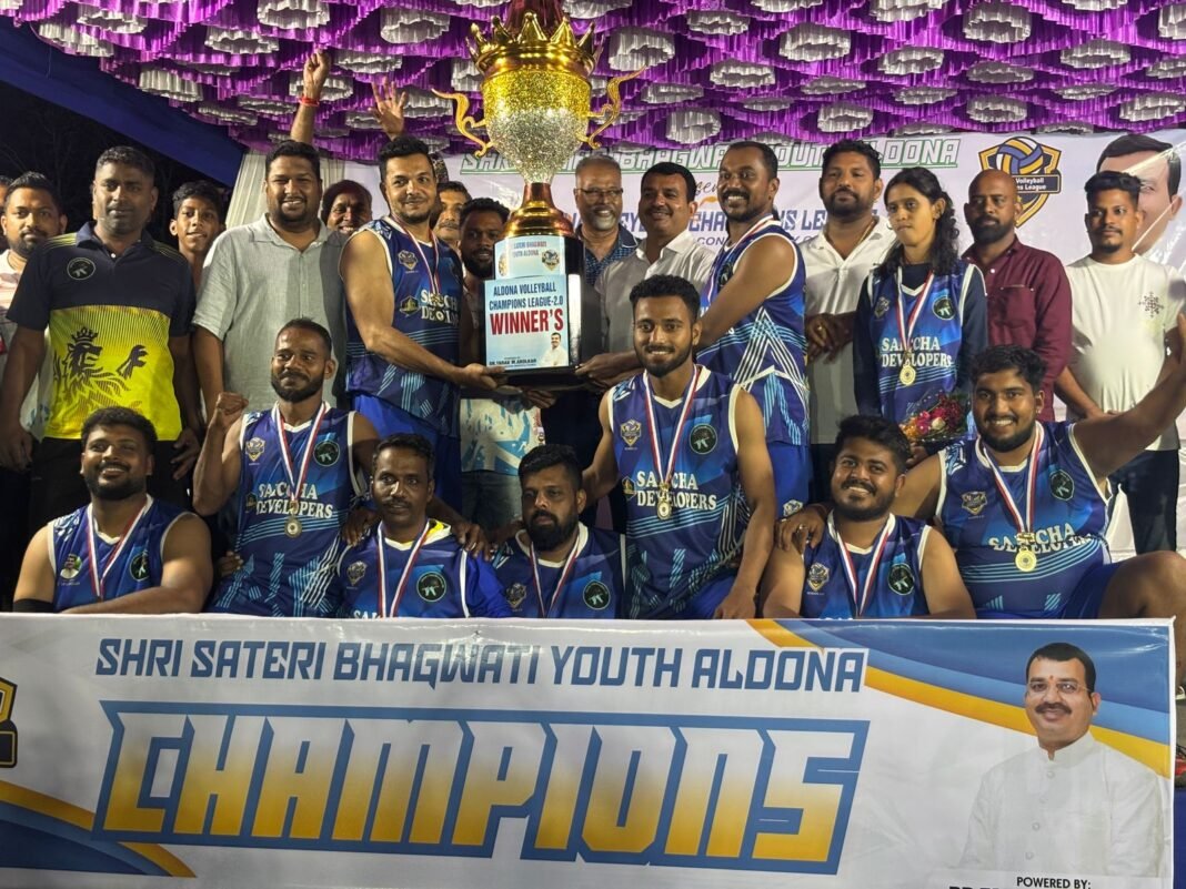 ALDONA: The Aldona Volleyball Champions League 2.0, a three-day auction-based volleyball tournament organized by Shri Sateri Bhagwati Youth Aldona, concluded on a high note at Galvar Ground, Aldona, with Shree Gopalkrishna emerging as the champions, while Sushant XI finished as the runners-up. The grand finale was played on Sunday, drawing an enthusiastic crowd.