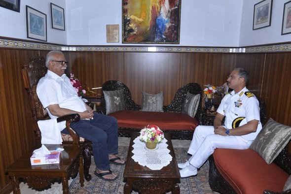 Panaji: Commanding Officer of INS Mandovi and Station Commander INS Mandovi, Cmde Aashish Sharma called on Governor, . Pushpati Ashok Gajapathi Raju at Lok Bhavan, Dona Paula. The meeting aimed to strengthen ties between the naval community and the state administration. Cmde Sharma’s visit is expected to foster cooperation between INS Mandovi and local authorities, enhancing maritime security and community engagement in the region.