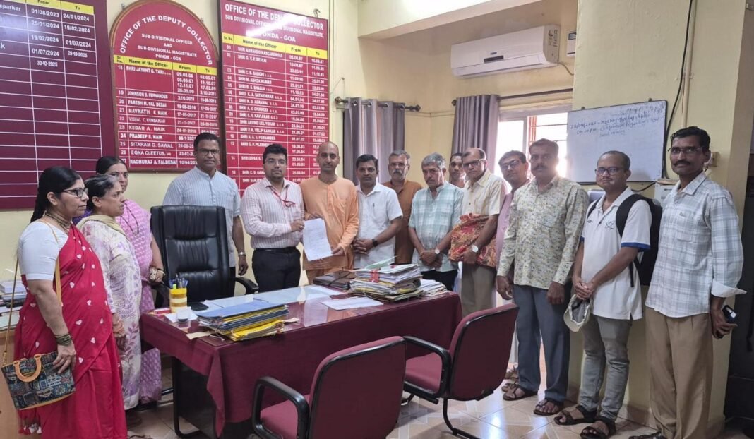 फोंडा, २० एप्रिल – फोंडा येथील नगरपालिकेच्या भाजी मार्केटच्या प्रवेशद्वारावरील चिकन शॉप हटवण्याची मागणी फोंडा येथील धर्माभिमानी नागरिकांनी येथील उपजिल्हाधिकारी श्री. कौशिक आमोणकर यांच्याकडे २० एप्रिल या दिवशी एका निवेदनाद्वारे केली आहे. उपजिल्हाधिकारी श्री. कौशिक आमोणकर यांना निवेदन देतांना शिष्टमंडळामध्ये ‘इस्कॉन’चे ब्रह्मचारी सर्वश्री अर्जुन प्रियप्रभू, सत्यविजय नाईक, देवानंद सुर्लेकर, गौतम प्रभू, राजेंद्र देसाई, शिवदत्त नाडकर्णी आणि इतरांची उपस्थिती होती. उपजिल्हाधिकारी श्री. कौशिक आमोणकर यांनी फोंडा नगरपालिकेला कारवाई करण्याचे आदेश देणार असल्याचे आश्वासन शिष्टमंडळाला दिले आहे. तसेच फोंडा नगरपालिकेचे नगराध्यक्ष श्री. वीरेंद्र ढवळीकर यांनीही आवश्यक कारवाई करणार असल्याचे आश्वासन दिले आहे.