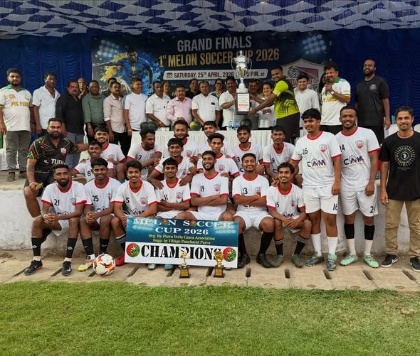 PARRA: A clinical FC Tuem silenced the home crowd on Saturday  defeating hosts PVC Parra 2–0 in the grand finale of the Melon Soccer Cup 2026, organized by PVC Parra.Setting up in a compact 4-2-3-1, FC Tuem absorbed early pressure before breaking on the counter. Their midfield pivots dictated tempo, switching play quickly and using the width to stretch PVC Parra’s back line. A well-worked set-piece opened the scoring late in the first half, with FC Tuem taking a 1–0 lead into the break.The second half saw PVC Parra chase the game and commit men forward, but FC Tuem’s high press and disciplined defensive shape forced turnovers in the middle third. A second goal came on the break — a slick one-two at the edge of the box finished with composure to seal the 2–0 result. Goalkeeper Jordon Fernandes was immense, commanding his area and pulling off a crucial one-on-one save in the 68th minute to preserve the clean sheet, earning him the Best Goalkeeper award.